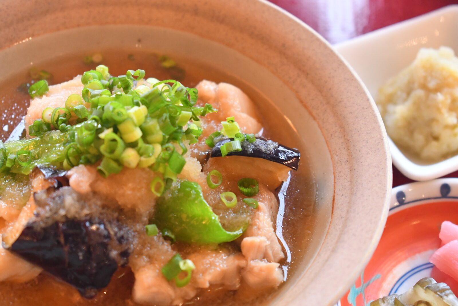 知床地鶏のみぞれ煮 辛味大根を添えて